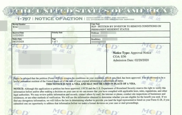 • 恭喜美成達客戶順利獲批I-829永久綠卡!